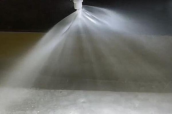 2021.6.3 礦山石料破碎除塵噴霧工程,深圳市鑫龍環(huán)保科技有限公司噴霧除塵(超聲霧化除塵)是最簡便和最經(jīng)濟(jì)的除塵方式,并且除塵效果良好。噴霧除塵是將水霧化處理成許多高速運動的密集細(xì)小水滴,是借助壓縮空氣沖擊共振腔產(chǎn)生的超聲波,利用超聲波將水霧處理成濃密的微細(xì)霧滴,這些微細(xì)霧滴在相對密閉的空間內(nèi)可以捕獲、凝聚微細(xì)粉塵,使得微細(xì)粉塵的黏性、濕度和比重顯著增加,進(jìn)而使得粉塵迅速沉降下來,逐漸實現(xiàn)除塵的目的。